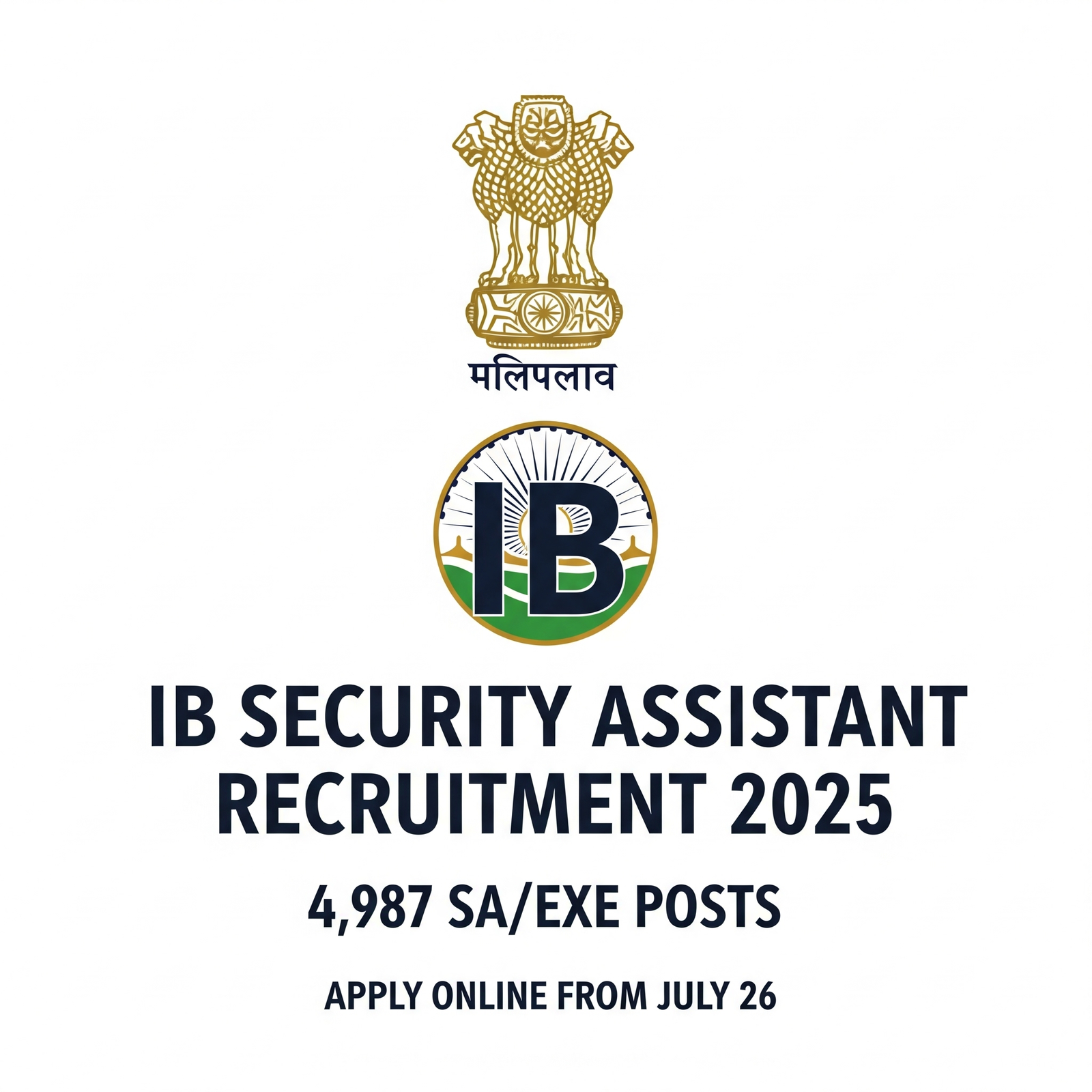 Name of Post: IB Security Assistant Recruitment 2025 for 4,987 SA/Exe Posts – Apply Online from July 26 Direct Link to Apply Online – Click Here |