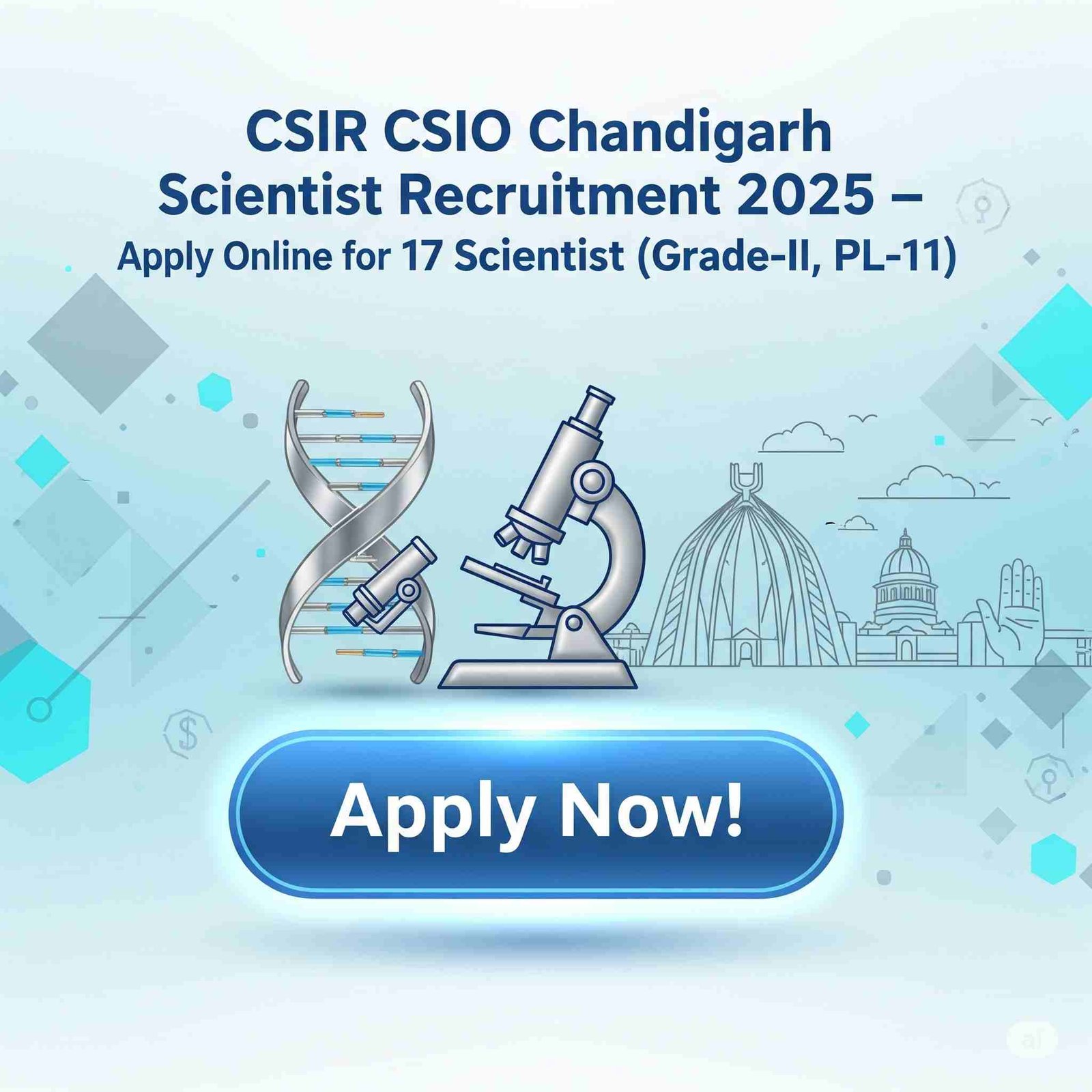 CSIR CSIO Chandigarh Scientist Recruitment 2025 – Apply Online for 17 Scientist (Grade-II, PL-11) Posts |