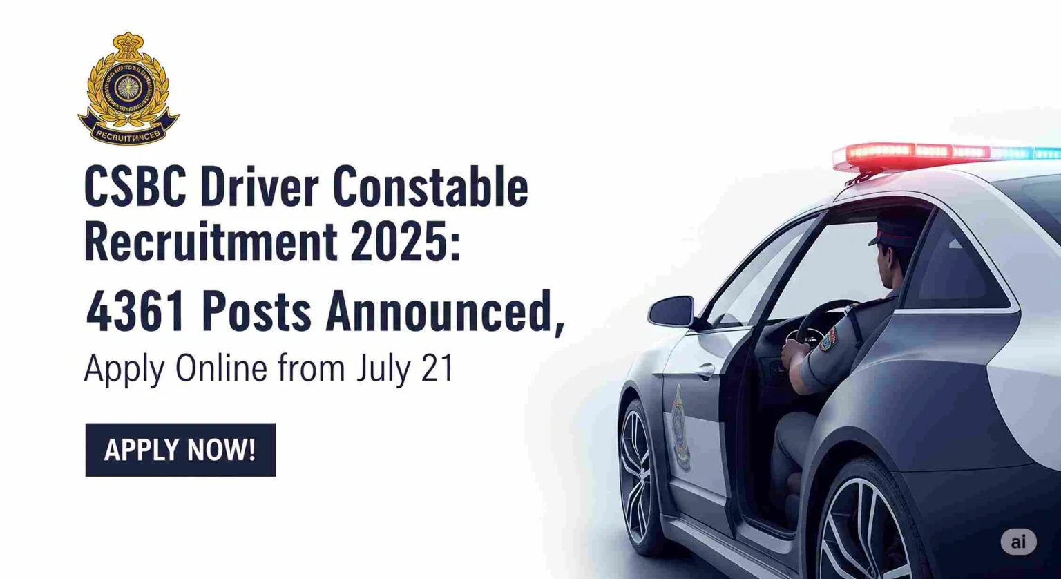 CSBC Driver Constable Recruitment 2025: 4361 Posts Announced, Apply Online from July 21