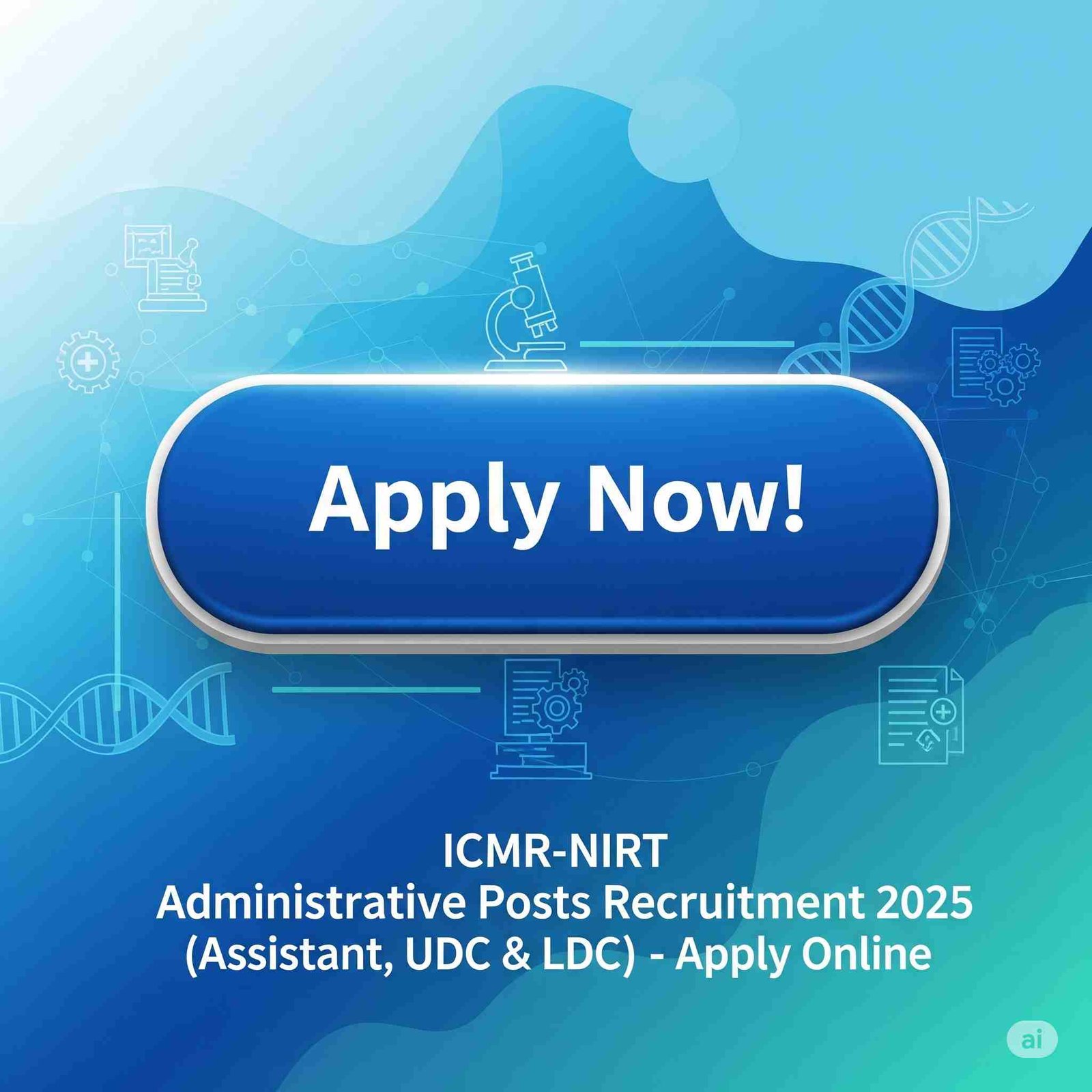 ICMR-NIRT Administrative Posts Recruitment 2025 – Apply Online for Assistant, UDC & LDC Posts The ICMR-National Institute for Research in Tuberculosis (ICMR-NIRT), Chennai, under the Indian Council of Medical Research, Ministry of Health & Family Welfare, invites online applications for recruitment to 16 Administrative Posts including Assistant, Upper Division Clerk ...