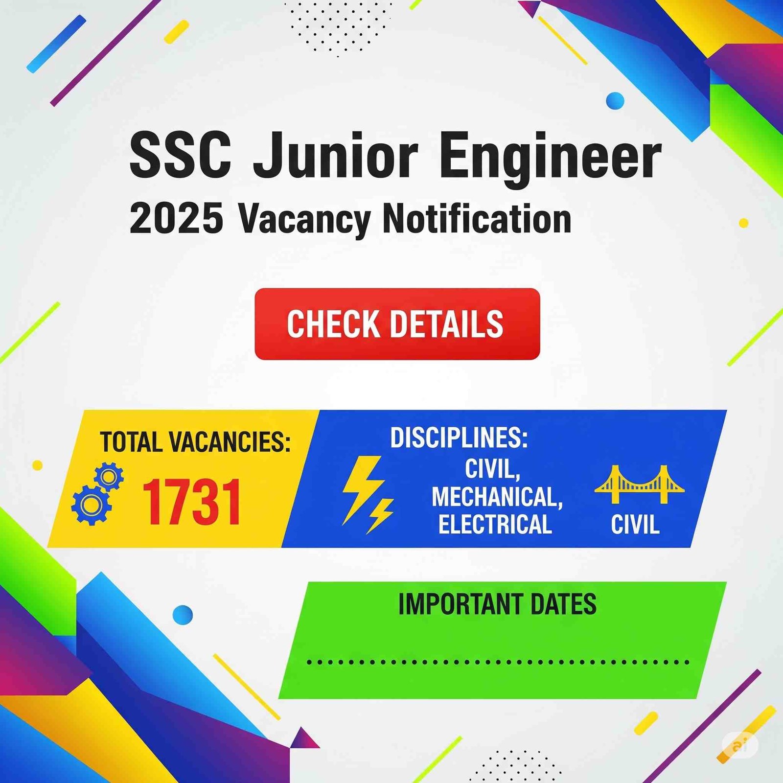 SSC JE Recruitment 2025: 1,731 Vacancies Released for Civil, Mechanical & Electrical – Apply Online Now Overview:The Staff Selection Commission (SSC) has officially released the notification for SSC Junior Engineer (JE) Recruitment 2025, inviting applications for 1,731 Junior Engineer vacancies across Civil, Mechanical, and Electrical disciplines. This recruitment offers aspirants ...