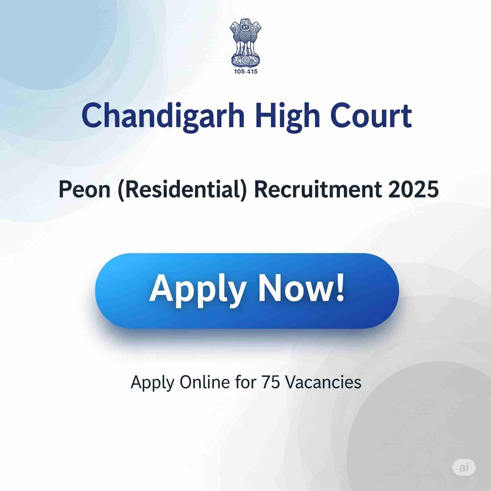 Chandigarh High Court Peon (Residential) Recruitment 2025 – Apply Online for 75 Vacancies The High Court of Punjab and Haryana, Chandigarh has released Employment Notice No. 03/PEON(R)/HC/2025 for direct recruitment to 75 posts of Peon (Residential). Peons (Residential) will serve at the official residences of Hon’ble Judges and Registrars, performing household ...
